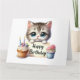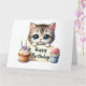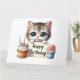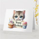 Uma Gatinha de Cinza bonita com um grande cartão de aniversário de olhos azuis. Gato bonito com dois cupcakes impressionantes. Kitten segurando um conselho dizendo Feliz Aniversário Este cartão é dentro vazio para você escrever sua própria mensagem. Disponível como download instantâneo para que você possa transferir para outros produtos no armazenamento.