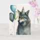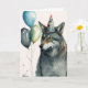 Cartão de Aniversário de Lobo com Aquarela e Balõe