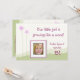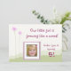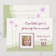 Convite de festa de aniversário com moldura de foto "menina crescendo como erva daninha" com flores cor-de-rosa, grama verde e fundo branco.