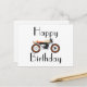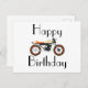 Este design tem uma motocicleta laranja e preta no meio. Na parte superior e inferior está escrito "Feliz Aniversário", em preto.