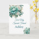 Imaginem este novo cartão de aniversário impresso a aquarela floral, sendo aberto por sua amiga especial com seu nome nele. Matizes de Teal & Green em um fundo branco nítido. Saudação a dentro impressa. Personalize e altere o nome do exemplo para o que você precisa com este modelo ou comprar, conforme mostrado.