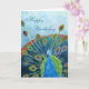 Pavão colorido desenhado num cartão de aniversário personalizado. Todo texto é totalmente personalizável.
