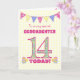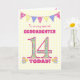 Um cartão de aniversário de 14 bonito para a sua afilhada, com bolinhas, flores de primata e números cheios de um padrão primata, tudo num fundo de gingham amarelo pálido. A mensagem principal do cobrir é: "Para uma FILHA MUITO ESPECIAL 14 HOJE!" A mensagem dentro é apenas uma sugestão e você pode personalizá-la facilmente ou excluí-la se preferir.