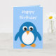 Cartão de aniversário de pinguins de desenho branco e azul. Todo texto é totalmente personalizável para que possa ser usado em qualquer ocasião. Perfeito para bebês e crianças pequenas. Por favor, visite minha loja de Designs Molly Sky para designs mais divertidas, bonitinhas e retrorativas para a família e os negócios. Uma vasta gama de produtos disponíveis: canecas; canecas de viagem; correntes-chave; calçados; carimbos; T-shirts; gravatas; skates; magnetos; cartões de saudação; mouses pads; aprons; gravatas; vestuário para cães; bolsas; botões/crachás; adesivos; bonés; artigos relacionados com o casamento; roupas para crianças e bebês; ornamentos pendurados; pinos/broches; marcadores (a granel); poster & ligantes.