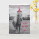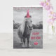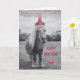 Este cartão de aniversário adorável apresenta uma imagem em preto e branco de um pônei usando um chapéu colorido de aniversário. Você não pode resistir à fofura!