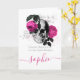 Cartão de aniversário de Skateboard Pink Skull