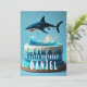 Faça seu aniversário absolutamente maxilar com este cartão de aniversário espetacular para tubarões! Apresentando um maravilhoso bolo azul-oceânico com ondas realistas e um magnífico topo de tubarões, esta carta é perfeita para entusiastas de tubarões e amantes do oceano. A frente exibe "Parabéns" com um nome personalizável, enquanto a parte traseira permanece vazio para sua mensagem manuscrita pessoal.
