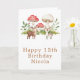 Cartão de aniversário rústico com adoráveis veados e cogumelos. Perfeito para um aniversário de primavera ou verão. As palavras podem ser alteradas para atender às suas próprias necessidades ou requisitos