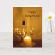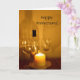 Aqui está um cartão de aniversário que evoca uma sensação calorosa e aconchegante! Copos de vinho e garrafa de vinho com uma vela acesa projetando sombras na parede. E é fácil personalizar a mensagem interna.