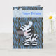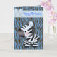 Cartão de Aniversário de Zebra Azul e Cupcake