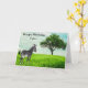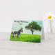 Este cartão apresenta uma zebra pastando grama verde, com árvore sombreada e céu azul. Personalize este cartão com seu próprio cumprimento. Seria um cartão atencioso para um menino.