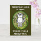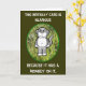 O cartão descreve o macaco que está na grama e lê-o, "este cartão de aniversário é divertido porque há um macaco nele." Dentro de diz, "feliz aniversario!"