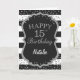 Black and Silver Glitter confetti 15 Birthday Card com nome personalizado.Para mais personalização, clique no botão "Personalizar" e use a ferramenta design para modificar este modelo.