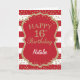 Red e Dourada Glitter confetti 16ª Placa de Aniversário com nome personalizado. Para mais personalização, clique no botão "Personalizar" e use nossa ferramenta de design para modificar este modelo.