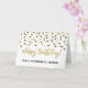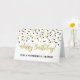 Cartão de aniversário para amigo com padrão de confete preto-e-ouro moderno.