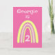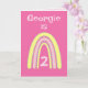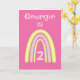 Este doce design do arco-íris pode ser personalizado com Nome e Idade. Cor bonito rosa e amarelo-limão. O dentro verso pode ser mantido, alterado ou removido seguindo o prompt 'personalize'.
