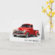 Velho caminhão vermelho no fundo ancorado no 100º aniversário. A idade de aniversário pode ser alterada.