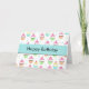 Este cartão de aniversário é perfeito para qualquer aniversário que você tenha. Ele apresenta um fundo coberto por pequenos cupcakes coloridos. Um gráfico de uma fita azul passa pelo centro com as palavras Parabéns. Todo texto é personalizável.