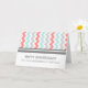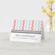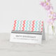 Felicite seus funcionários por seu aniversário com sua empresa com este cartão de aniversário de trabalho feliz e na moda e contemporâneo em um padrão de riscas cor-de-rosa-pêssego, azul-turquesa, cinza escura e zigue-zags retrorreflectores brancos.