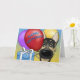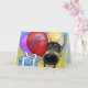 Adorável German shepherd Grande Nose com um presente de aniversário e segurando balões em sua boca. Balão lê Rappy Rirthday!