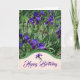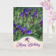 Este cartão de flor roxo foi criado de uma das minhas fotografias originais de íris roxos. O jardim que você vê cresce ao longo da minha calçada. A foto foi capturada quando as flores começaram a florescer. Personalize este cartão com as suas próprias palavras, este cartão pode ser utilizado em diversas ocasiões.