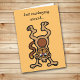 O cartão de aniversário deste miúdo fofo mostra um macaco de desenho fazendo uma estante manual num fundo laranja. Todo o texto, frente e dentro, é personalizável, então você faz personalizá-lo ou fazê-lo dizer o que quiser.