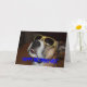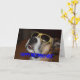 Máximo um cão com vidros de Sun no fim do tiro acima em um cartão de aniversário.