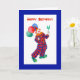 Um Cartão de Aniversário brilhante e alegre, específico da Idade, para uma criança de 4 anos, com balões de carregando de palhaço, a partir de uma ilustração pintada à mão por Judy Adamson. Por favor, sinta-se à vontade para mudar o texto do dentro para o seu gosto.