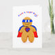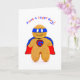 Cartão de aniversário do personagem homem-biscoito super-herói fofo vermelho e azul