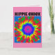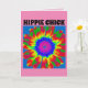 CARTÃO DE ANIVERSÁRIO DO PINTINHO HIPPIE. LEITURA dentro: TENHA UM ANIVERSÁRIO GROOVY.