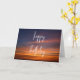 Um simples, mas lindo cartão de aniversário do pôr do sol com uma fonte manuscrita e a vista do céu do pôr do sol junto ao mar.