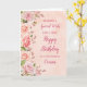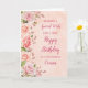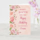 Um belo cartão para sua prima no aniversário com flores cor-de-rosa pastel e detalhes do efeito ouro rosa.