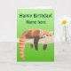 Um adorável panda vermelho, relaxante no seu aniversário, este cartão tem uma impressão de um desenho pastel de um panda vermelho. Você pode adicionar o nome do destinatário para tornar este cartão pessoal extra.