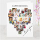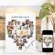 Diga Feliz Aniversário com um cartão de colagem de fotos cardíacas. O modelo de foto está configurado para que você adicione suas fotos, trabalhando em linhas de cima para baixo. A colagem de fotos contém 29 fotos que são exibidas em uma mistura de retratos, paisagens e formatos quadrado/instagrama. "Ame você" está escrito em um elegante guião manuscrito e o texto dentro é totalmente editável. Você também pode editar "Parabéns" se quiser o design para uma ocasião diferente. Um cartão de guarnição adorável que pode enquadrar ou colocar numa caixa de memória para tesourar para sempre.