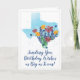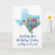 O Texas dimensionou desejos de aniversário decorados com flores silvestres de aquarela na forma do Texas. Personalize facilmente a saudação com apenas alguns cliques!