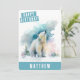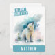 Um cartão de aniversário de aquarela lindo com um urso celebrando o inverno na frente com "Feliz Aniversário" em uma fonte branca e boné em negrito. Personalize a frente adicionando seus nomes. A parte traseira da placa apresenta espaço para sua mensagem digitada ou manuscrita.