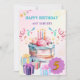 Um lindo cartão de aniversário rosa, retratando montes de guloseimas deliciosas. Faça uma menina muito feliz no seu aniversário especial com este cartão de cumprimentos fofo.