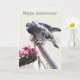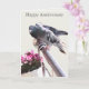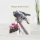 Este maravilhoso cartão de aniversário de edição mostra uma fotografia tirada na minha varanda de um par de pombos devotos sentados no trilho sobre um pote pendurado colorido de Saxifrage vermelho.
