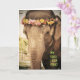 Fotografia de um elefante vestindo uma plantação de flores na sua cabeça.