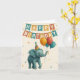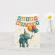 Façam aniversários extra especiais com este adorável cartão de elefante! Apresentando um doce elefante bebê em um chapéu colorido de festa, segurando balões sob um cartaz alegre de "Feliz Aniversário", este cartão é perfeito para crianças, amantes de os animais, ou qualquer pessoa que goste de arte alarmante e caprichosa. Impresso em cartolina premium e dentro vazio para sua própria mensagem. Este cartão pode ser facilmente transferido para outros tamanhos e formatos, permitindo que você o personalize perfeitamente de acordo com as suas necessidades.