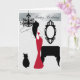 Cartão de Aniversário Elegante e Chic com linda mulher, mobiliário vintage e candelabro. Gráficos para mulheres e gatos por Urban Willow.