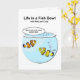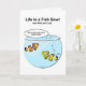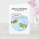 Dois palhaços a falar numa tigela de peixe, com cartões de aniversários.