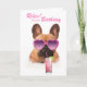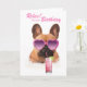Cartão de aniversário engraçado de um bulldog francês com óculos de sol e um coquetel. Relaxando no seu aniversário