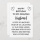 Torne o dia especial do seu parceiro ainda mais memorável com este Cartão de Aniversário Engraçado para Marido ou Esposa! Embalado com humor barato e banter brincalhão, este cartão é perfeito para casais que adoram compartilhar uma risada. Quer você esteja comemorando o aniversário do seu marido ou esposa, este cartão adiciona uma reviravolta reluzente à ocasião. Ideal para aqueles que desfrutam de um pouco de sabedoria, é a maneira perfeita de mostrar seu amor enquanto mantém a celebração divertida e única! Perfeito para um presente de aniversário humorístico e inesquecível!
