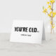 O cartão diz, "VOCÊ É VELHO(er)", mas o "er" está entre parênteses e é muito pequeno quando comparado com as outras letras. À primeira vista parece que diz, "VOCÊ É VELHO". Por baixo disso também se diz "feliz aniversário" em letras pequenas. Use esta carta engraçada para irritar alguém no seu aniversário! Perfeito para amigos, parceiros, pais e colegas!