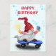 Cartão de Aniversário Feliz com Gnome Patinador Fe