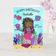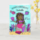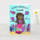 Este lindo cabelo preto afro-americano com realces roxos na placa de sereia foi desenhado à mão por mim mesmo, e apresenta uma bonito sereia loira com seus amigos, polvo, peixe, estrelas e coral. A dentro do cartão tem uma página de bônus para a aniversariante colorido! Espero que goste e que te obrigado por procurar! Todos os meus desenhos animados foram inspirados pelos meus próprios netos.