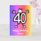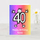 Desenho animado fofo de um número quarenta com rosto sorridente e mãos e pés. Desenho animado divertido para 40 anos de idade. O cartão tem um fundo colorido com efeito de brilho. Envie este cartão para celebrar um aniversário de quarenta anos! Personalize facilmente este cartão editando o texto do modelo na frente e no verso. Obrigado por visualizar meus designs!
