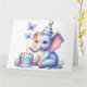 Um cartão de elefante Bonito. Um bonito bolo decorado e borboletas. Este cartão é vazio para você escrever sua própria mensagem. Disponível como download instantâneo para que você possa transferir para outros produtos no armazenamento.