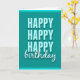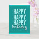 Cartão de Aniversário Feliz de Satin Teal Moderno